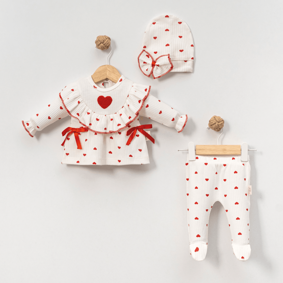 Kız Bebek Kalp Süzeneli Şapkalı Takım